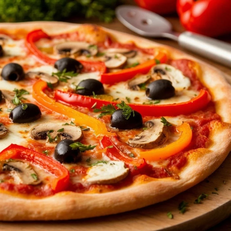 Откройте для себя яркую и сочную пиццу «Вегетариано», которая порадует вас гармоничным сочетанием хрустящего теста, сладкого болгарского перца, сочных томатов и ароматных шампиньонов. Нежный соус, сладкий лук и расплавленный сыр добавляют пицце изысканности и делают каждый кусочек настоящим гастрономическим наслаждением. «Вегетариано» — идеальный выбор для ценителей вегетарианской кухни!